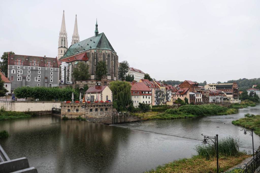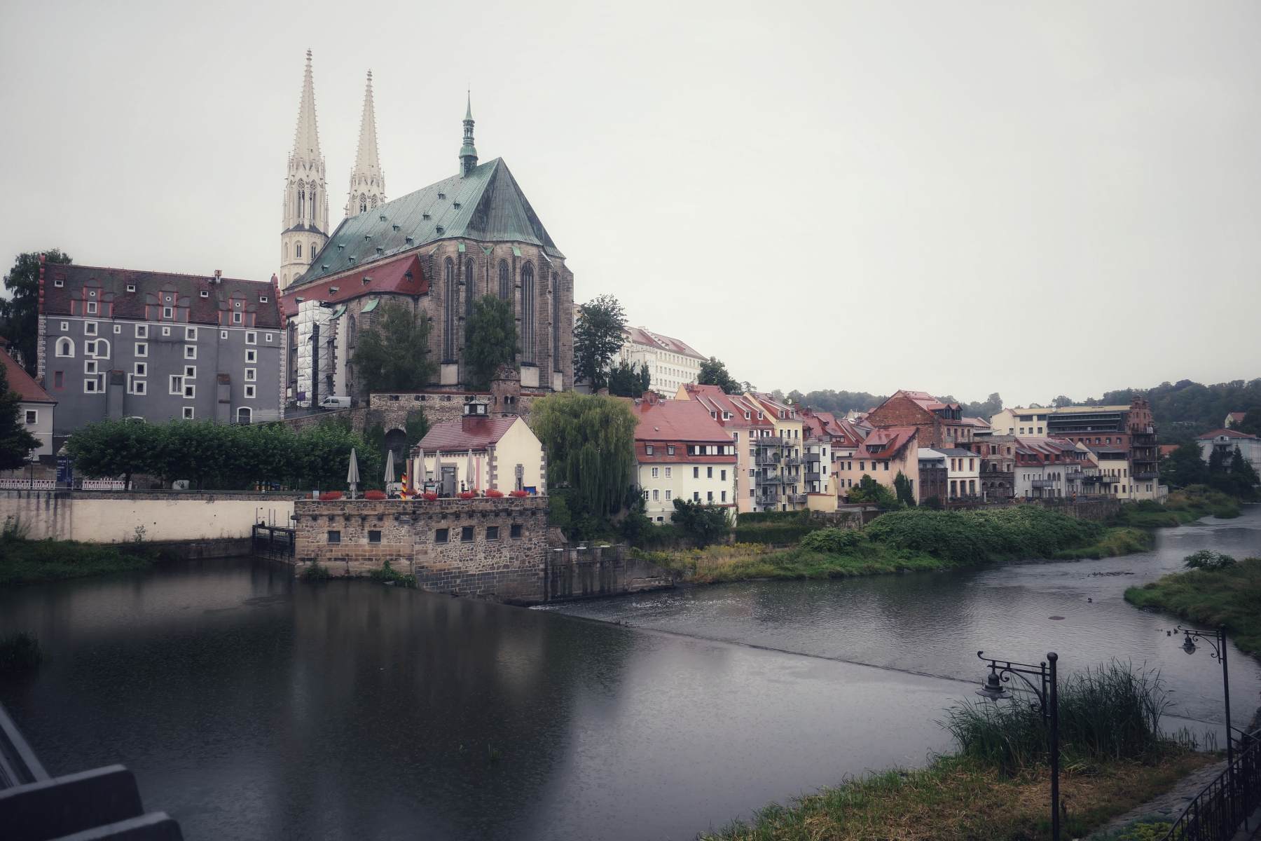 Am Ende ein Blick von der Brücke, die zur polnischen Nachbarstadt Zgorzelec führt, auf die Pfarrkirche St. Peter und Paul und Häusern an der Neiße – in unterschiedlicher Bearbeitung: Welche Version gefällt euch besser?