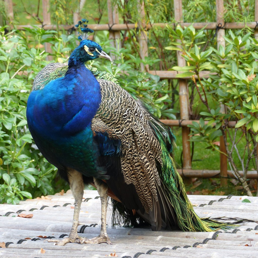 Ich glaube, ich habe es noch nie live erlebt, wenn ein männlicher Pfau seine Schwanzfedern zum Rad auffächert… Auch hier im Holland Park 2015 hat sich dieser Pfau nur so präsentiert. Aber was für prachtvolle Farben schon im normalen Zustand!!! Irgendwie war mir dieser Pfau zuerst zum Thema eingefallen, obwohl ich auch die weißen Pfauen (gesehen und fotografiert in Warschau – werden sicher noch an anderer Stelle gezeigt werden) ausgesprochen hübsch finde.