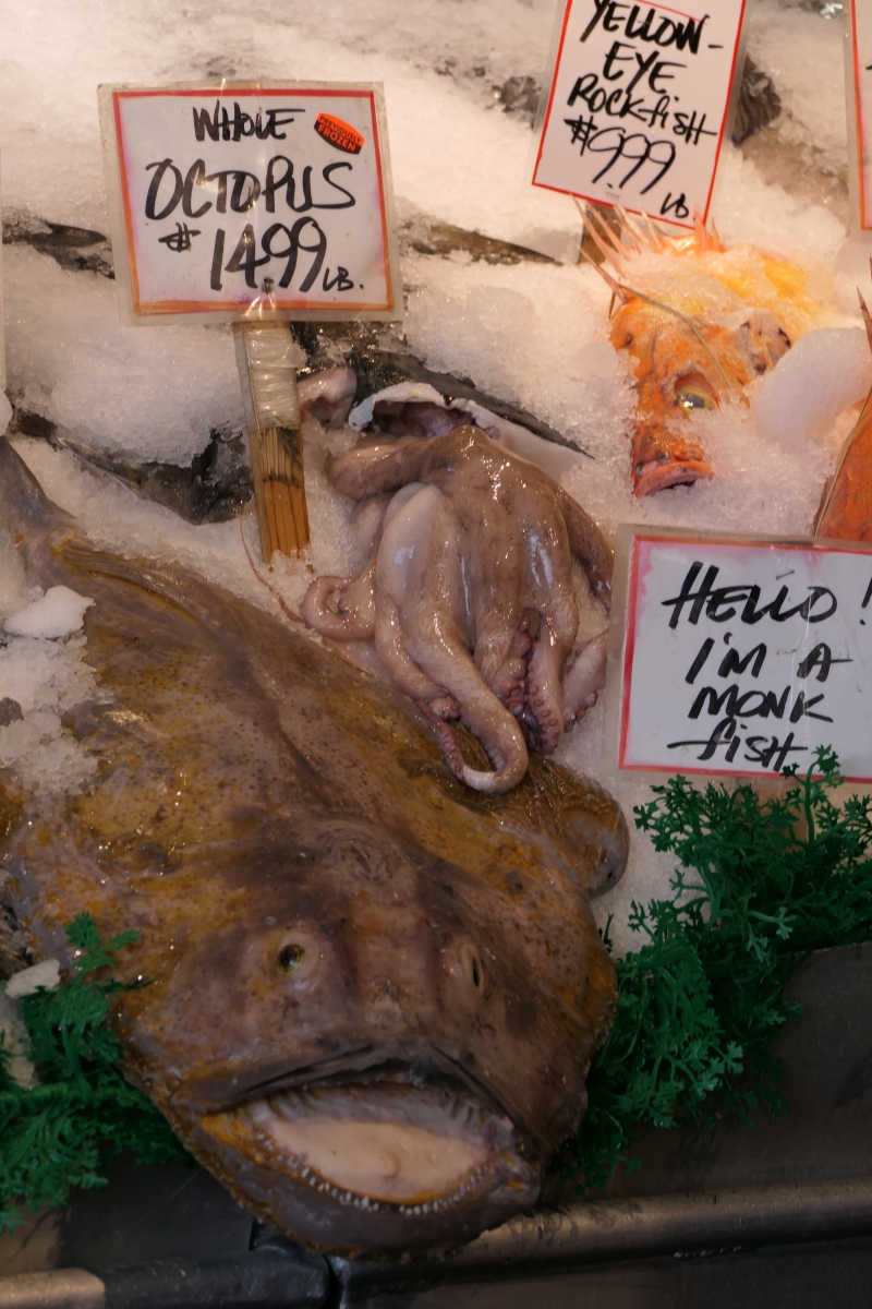 Pike’s Place Market ist immer einen Besuch wert, auch wenn es beim Fischmarkt nicht viel Action gab. Lauter Touristen, und alle guckten nur und kauften nichts. Dann können sich die Verkäufer auch keine Fische zuwerfen…