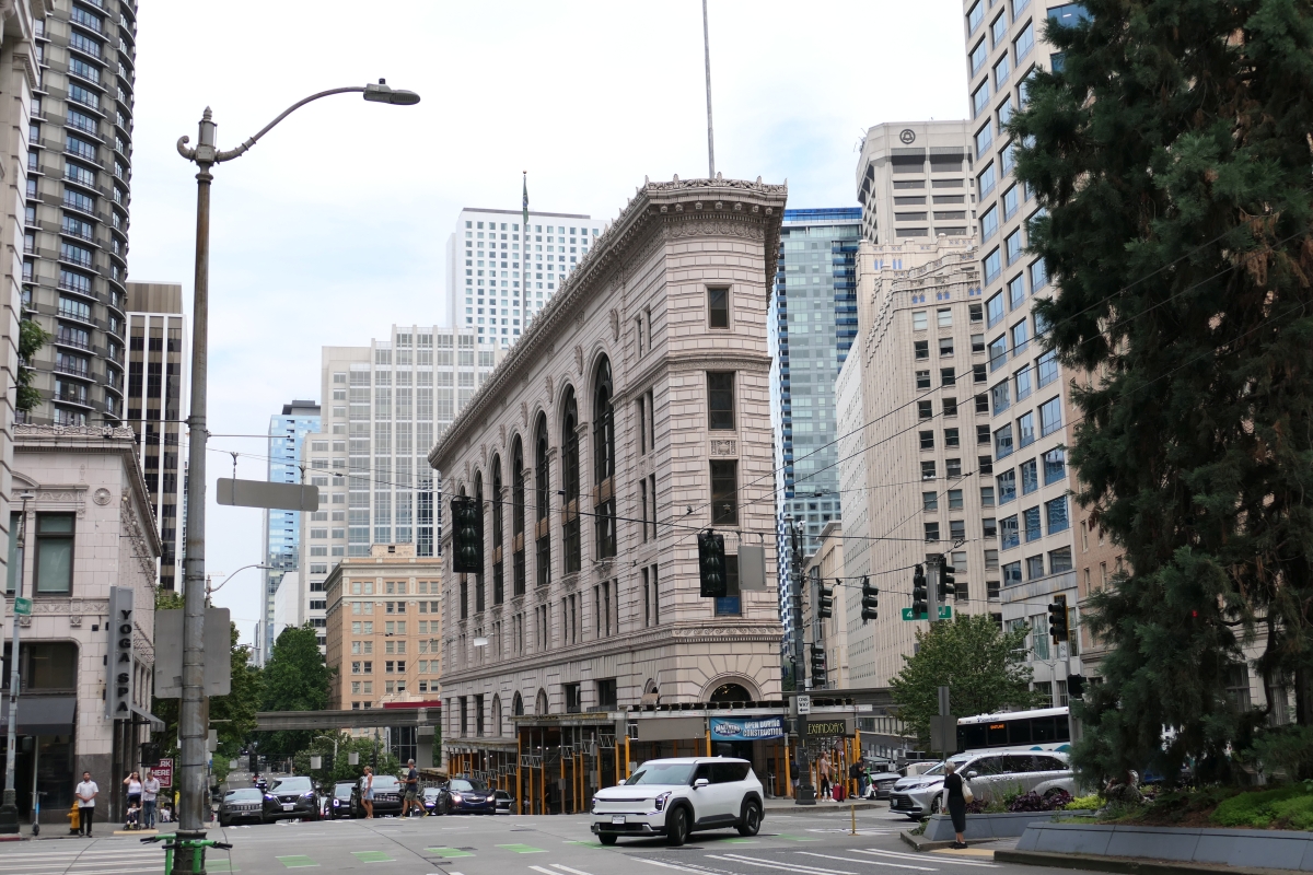 Die Kontraste zwischen alt und neu fand ich wieder einmal faszinierend. In den Bildern unten sieht man z. B. einen Teil von The Rainier Club (fertiggestellt 1904) und den F5 Tower (fertiggestellt 2017) im Hintergrund. Mir gefällt beides!