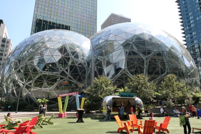 Und dann wollte ich auch noch zu den Amazon Spheres, die Teil eines ganzen Blocks von Amazon-Gebäuden waren. Dies gehörte z. B. alles dazu: