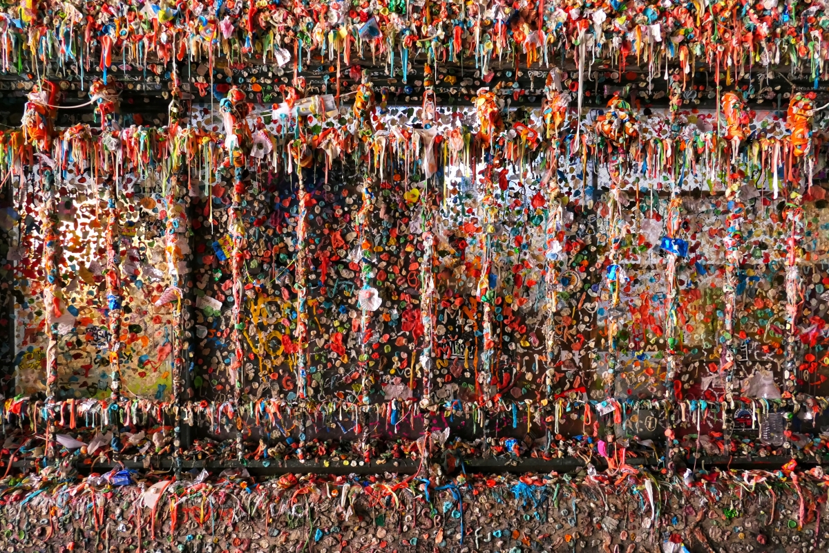 Auf dem Weg zu Pike’s Place Market kamen wir ungeplant durch die Gum Wall in der Post Alley. Ich habe mir das mit einer Mischung aus Faszination und Ekel (letzteres insbesondere durch den süßlichen Geruch dort) angesehen. Farblich auf jeden Fall toll! 😀 Ach so: Ja, das sind alles Kaugummi…