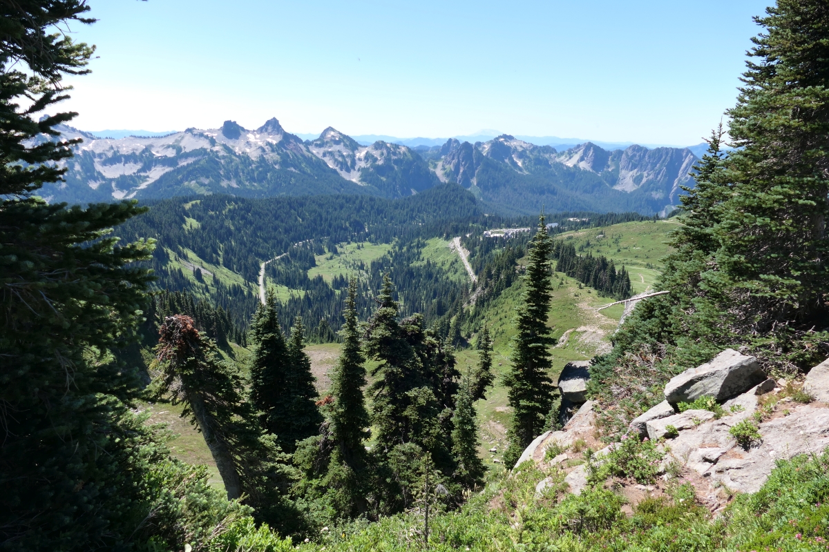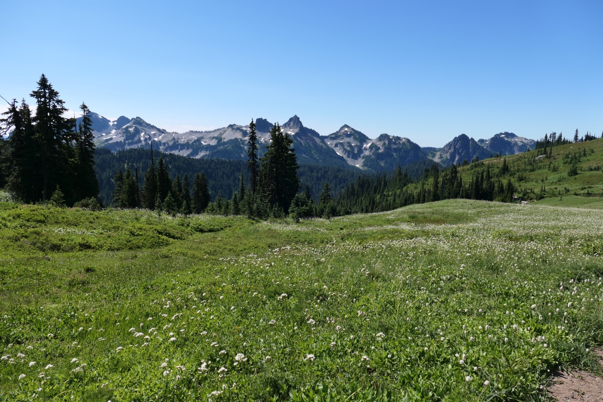 Die Tatoosh Range und rechts der Blick auf Paradise.