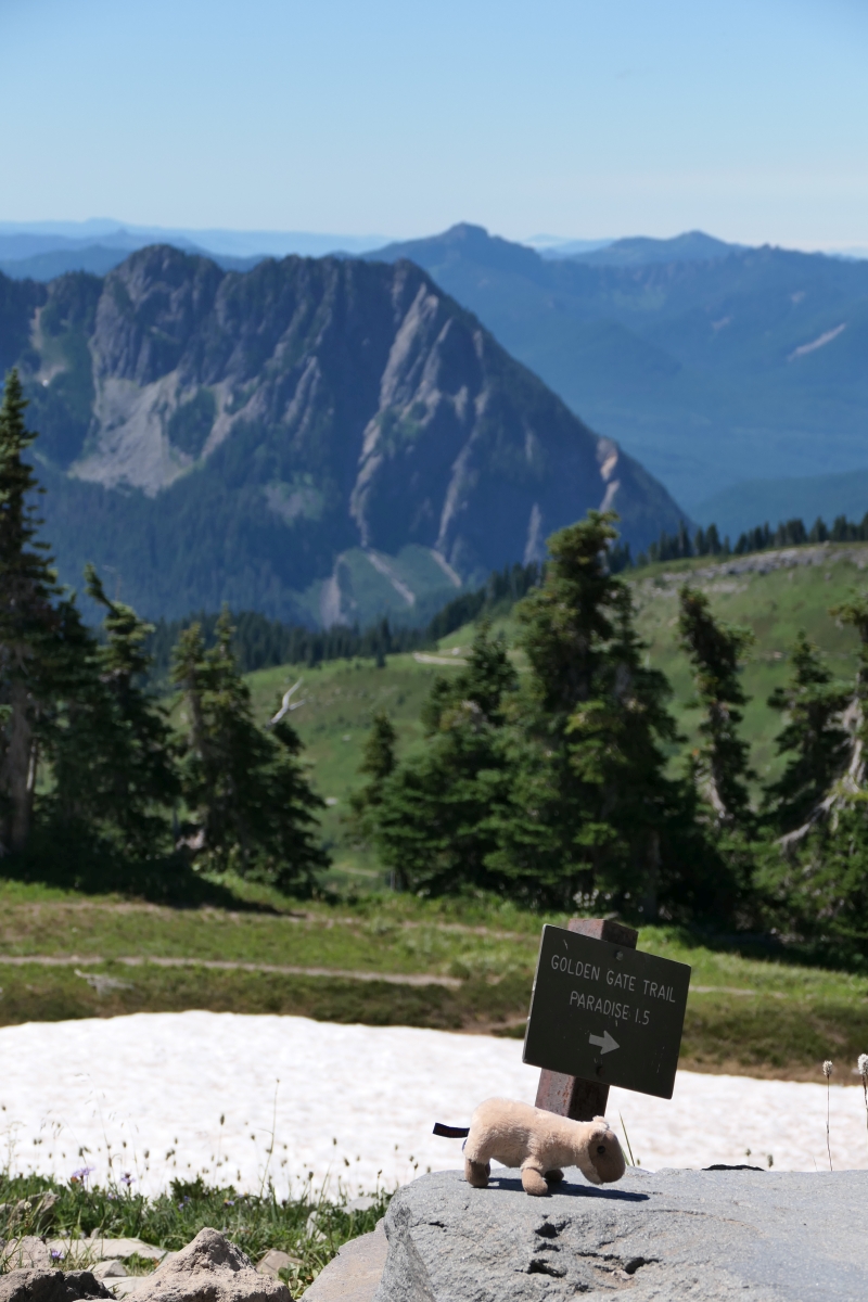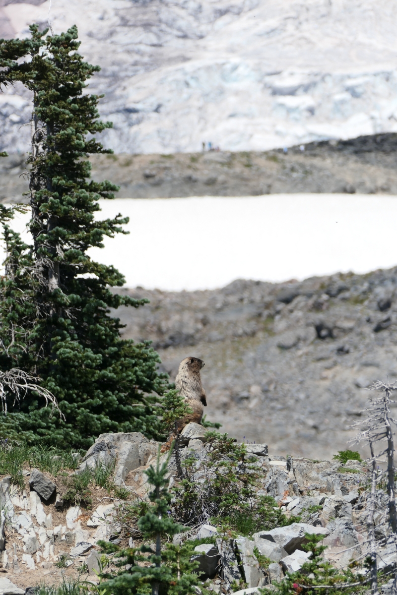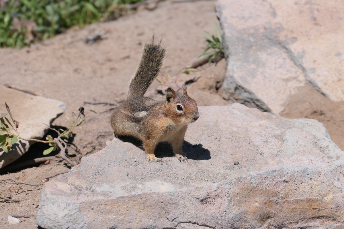 Neben den auf Mt. Rainier wenig schreckhaften Murmeltieren, gibt es auch noch die zutraulichen bis aufdringlichen Kaskaden-Goldmantelziesel – die wissen, wie man für die Kamera posiert! ❤ Aber eigentich wollen sie nur etwas zu essen… 😉 Von uns haben sie nichts bekommen.