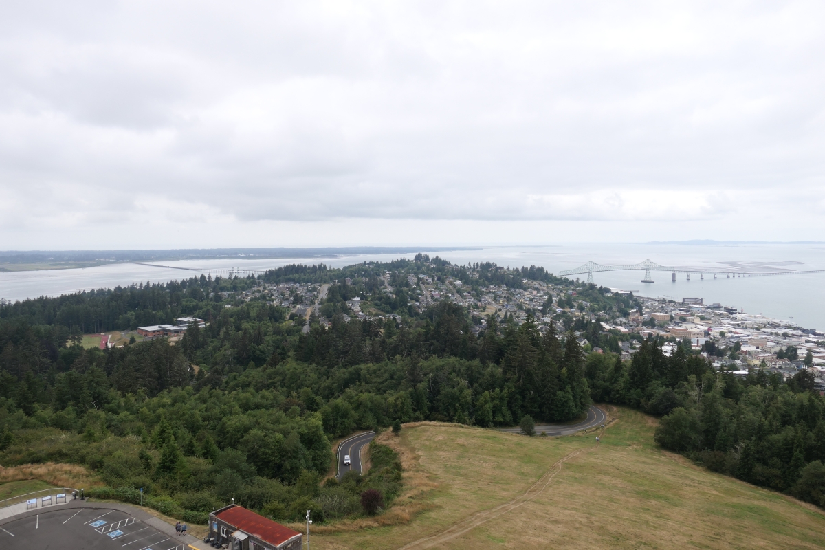 Hier noch ein paar weitere Eindrücke von oben, als wir am nächsten Tag bei Astoria Column waren. Hier hatten wir das erste Mal Probleme ohne Bargeld, denn der Parkplatz war kostenpflichtig (kassiert wurde bei der Einfahrt) und man konnte nur bar bezahlen. Aber nach etwas Hin und Her haben wir dann doch noch an der Kasse im Souvenirshop mit Karte gezahlt…