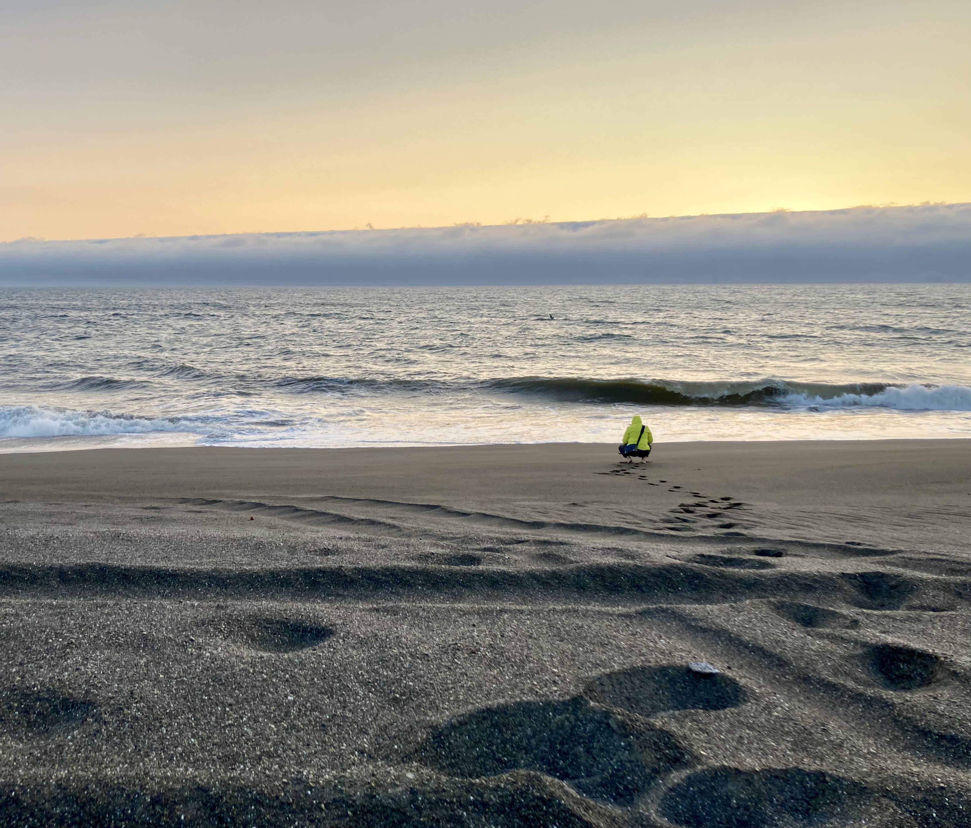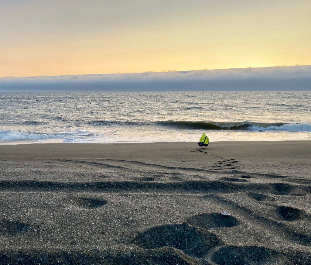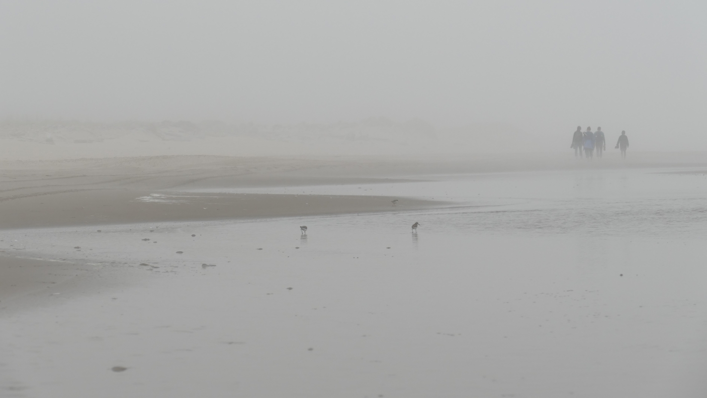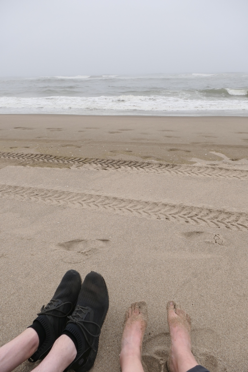 Die wenigen Menschen, die auch mit am Strand waren, verschwanden bald im Nebel… Wir fühlten uns völlig allein mit dem Meer – von Strandläufern und Möwen mal abgesehen. Es war soooo toll!!!