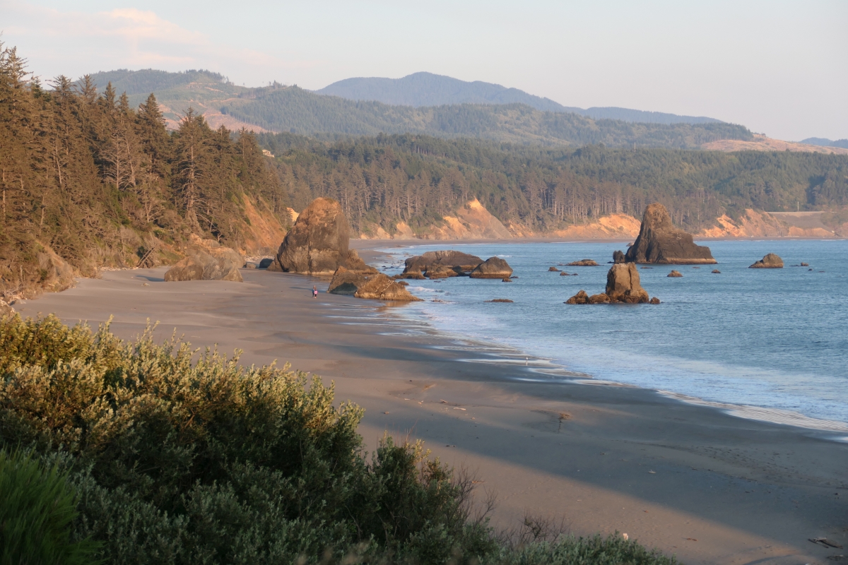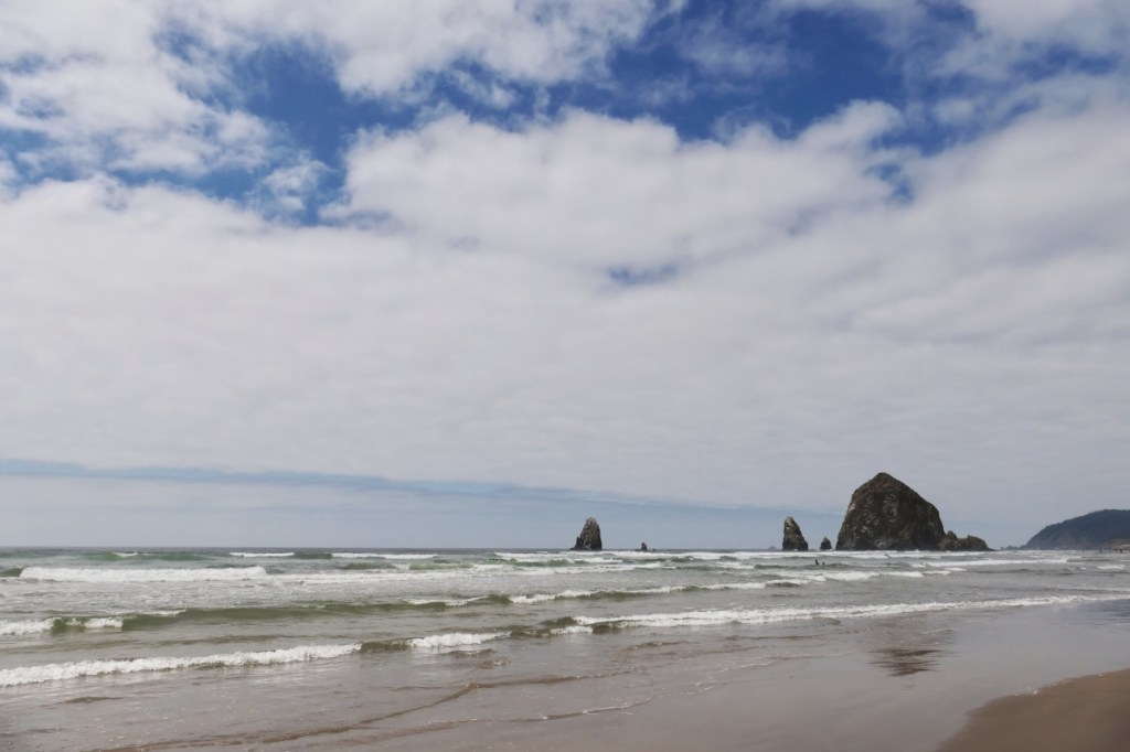 Übrigens habe ich 2016 genau von derselben Stelle aus ein Foto gemacht (allerdings offenbar bei Ebbe) – schaut doch nochmal in meinen Oregon Coast #3-Beitrag nach. 🙂