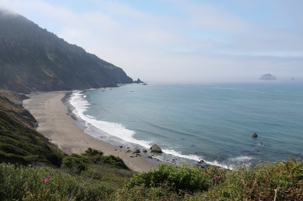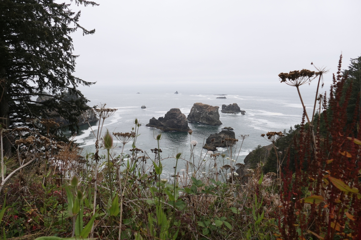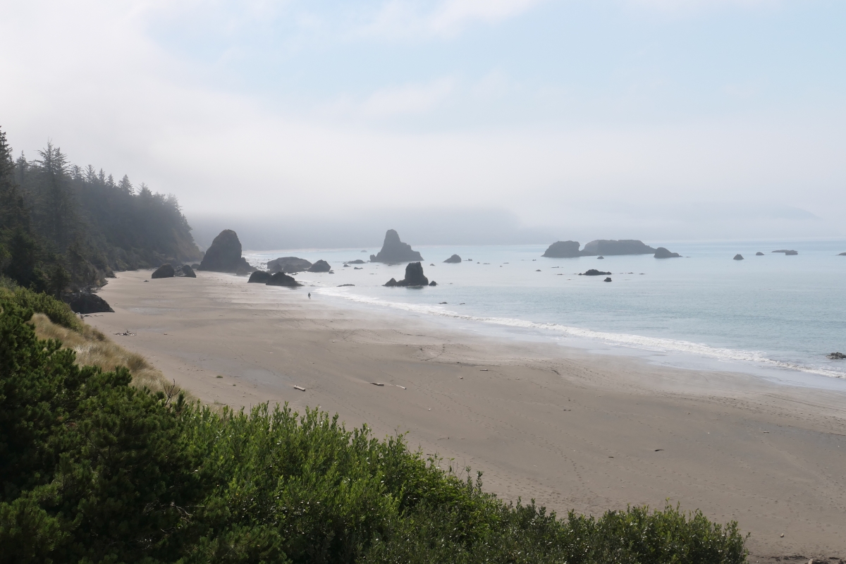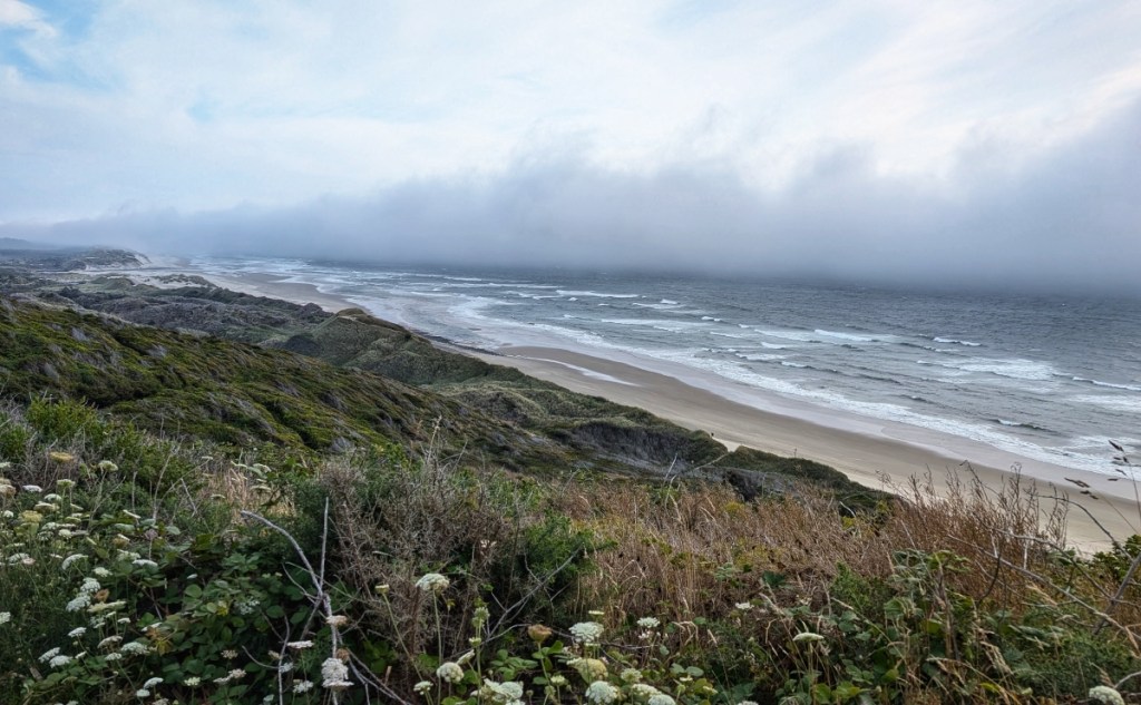 Am nächsten Morgen zog es schon wieder etwas zu, was aber übrigens gar keine Kritik sein soll! Wir liebten das Wilde der Küste Oregons, und dazu gehört auch das etwas unbeständige Wetter (aber leider ohne Regen 😉 ).