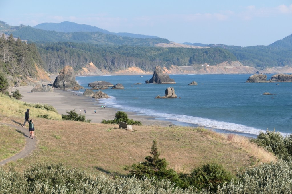 Dann fuhren wir an einer Bucht am Ende des Örtchens Port Orford vorbei, die mir ganz besonders ins Auge sprang – und so haben wir tatsächlich bei nächster Gelegenheit (unter Protest des Stepnwolfs) umgedreht und sind zurückgefahren: