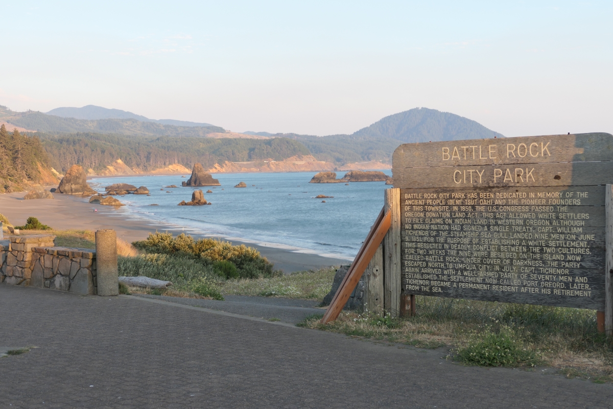 Eine wertvolle Info war, wo wir für den Sonnenuntergang hinfahren sollen, denn am Strand des Battle Rock City Parks würde die Sonne hinter Felsen verschwinden. Ich habe das kurz überprüft…