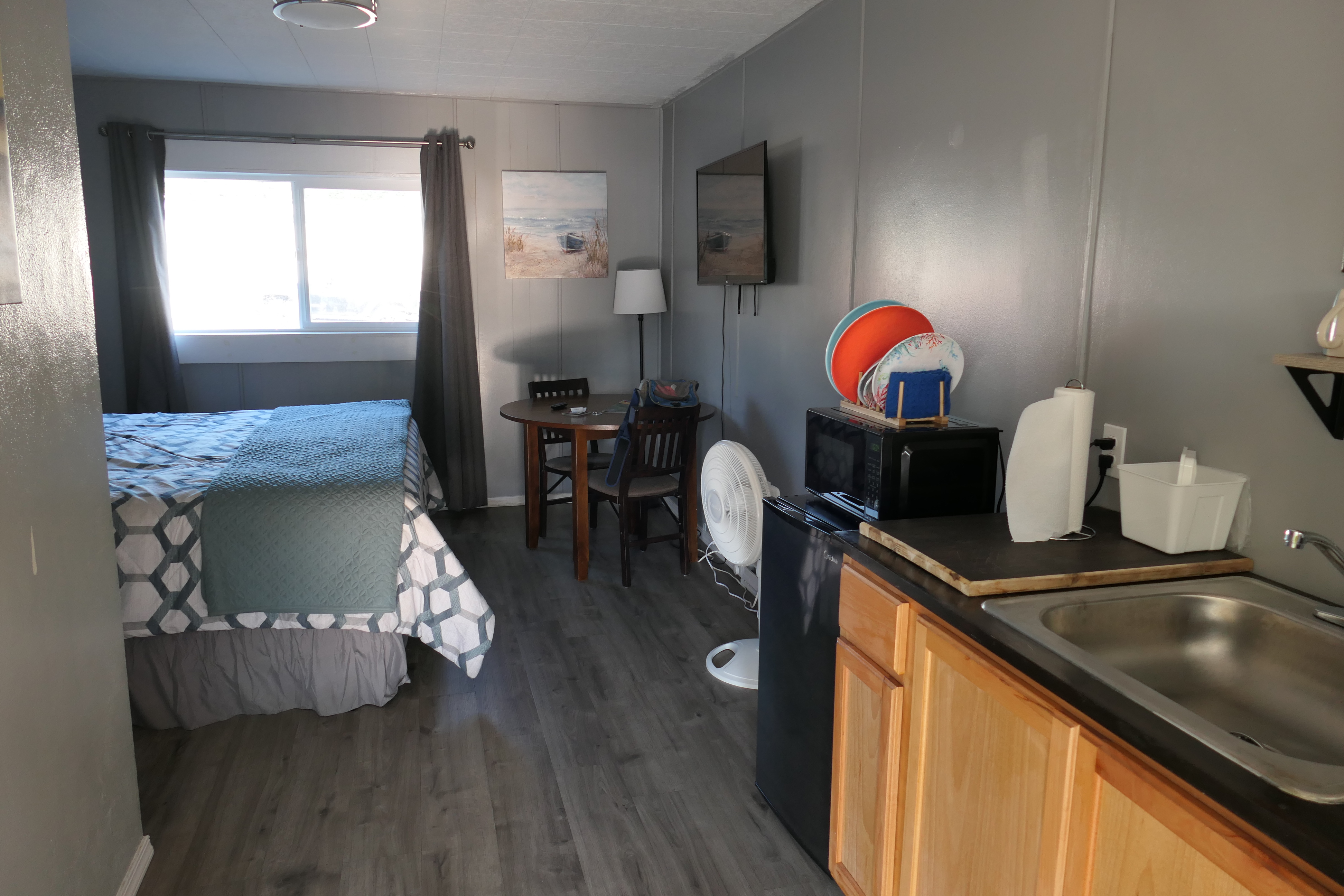 Und was für ein Glück – direkt gegenüber des Parkplatzes gab es ein Motel mit Restaurant, wo wir ein süßes Zimmer und ein leckeres Abendessen (samt jeder Menge Info vom Besitzer des Motels) bekommen haben.