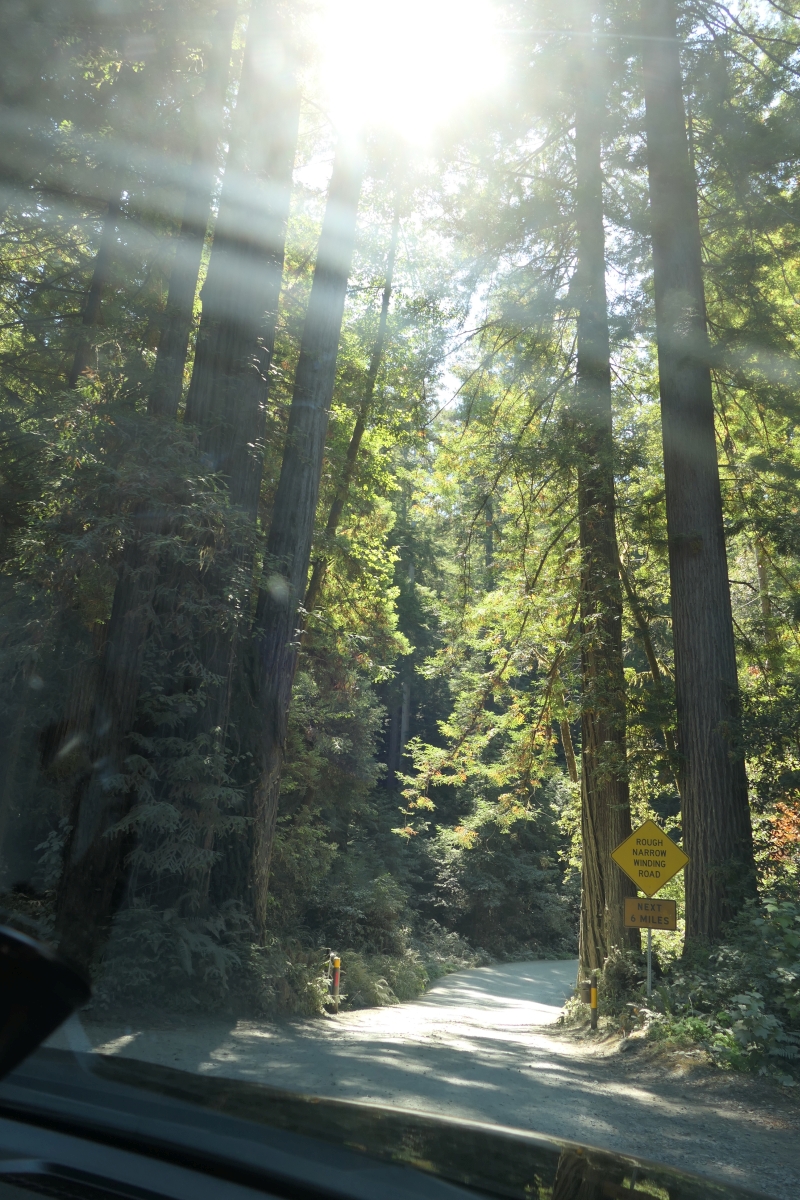Und so fuhren wir also am Nachmittag in den Jedediah Smith Redwoods State Park hinein… Hier ging es stellenweise nur auf Schotterpisten voran.