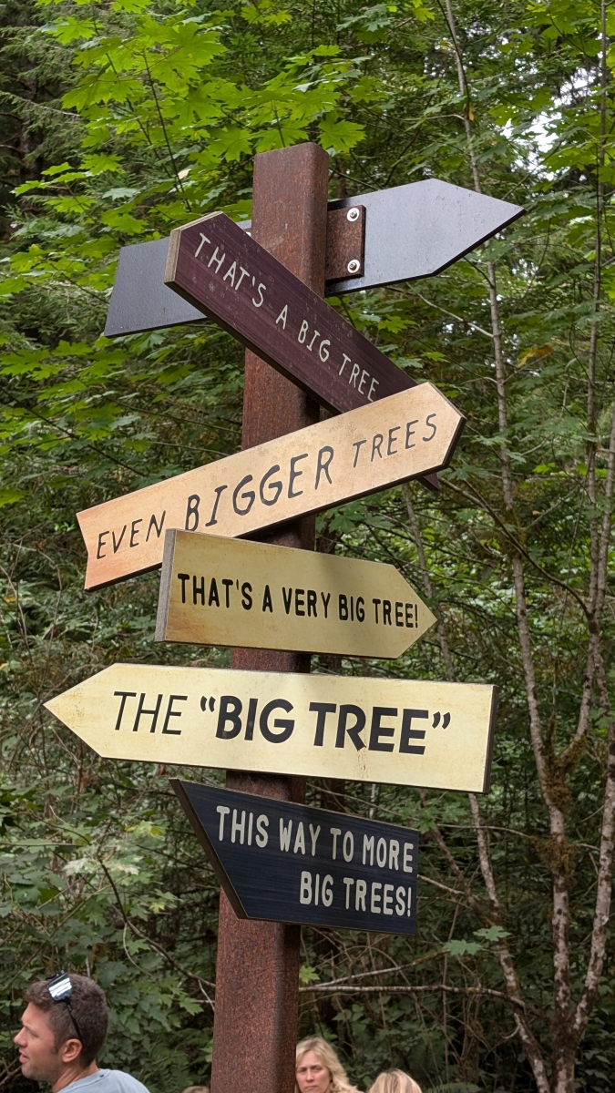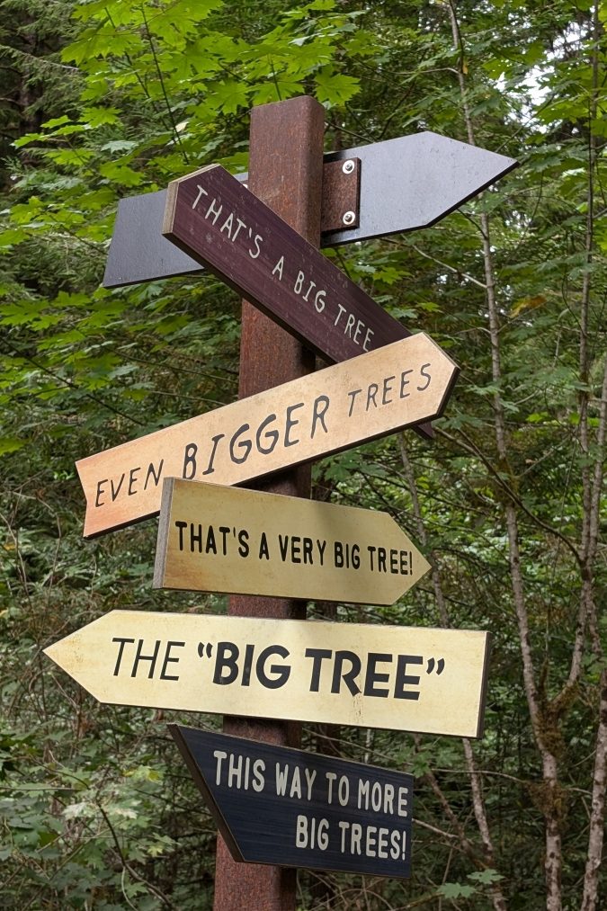 Dann also unsere erste kleine Wanderung zwischen diesen Giganten hindurch, deren gigantische Ausmaße man wirklich ganz schwer fotografisch festhalten kann, ganz zu schweigen von dem Effekt, den diese Bäume auf uns hatten.