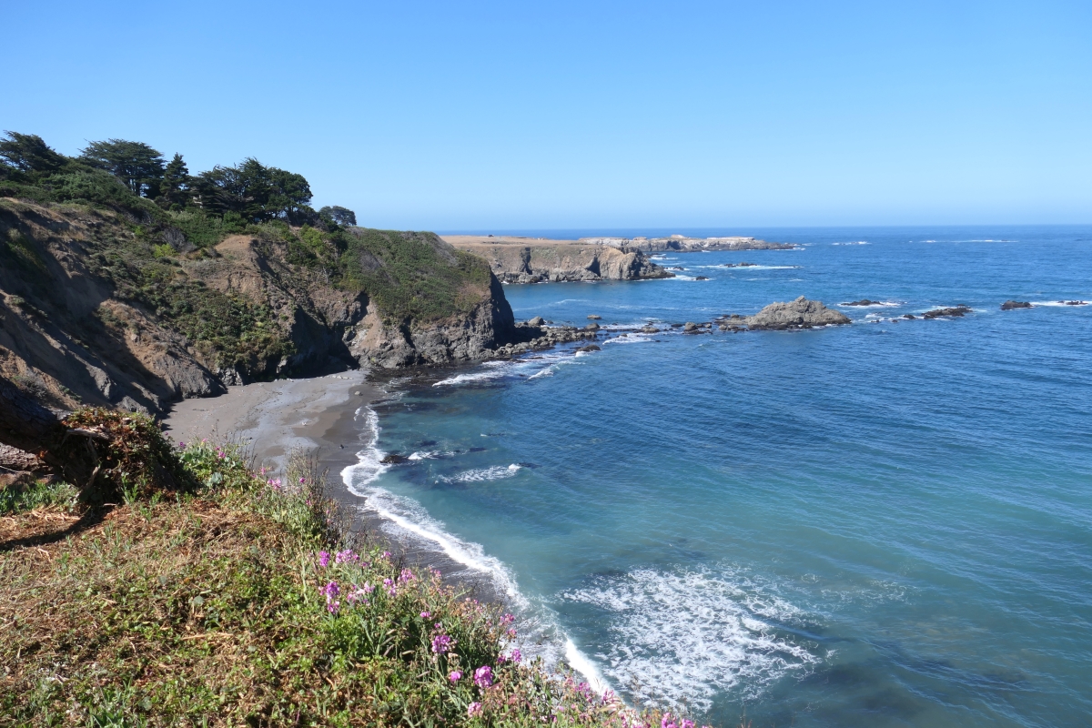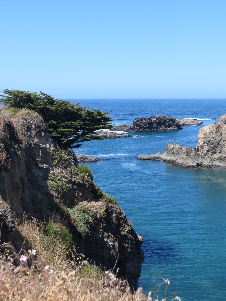 Nach Eureka sind wir ja noch einmal durch Redwood-Wälder gefahren und gegangen – und dann ging es weiter an der Küste entlang. Wir hatten noch keine Unterkunft, die ich dann noch im fahrenden Auto 45 Minuten vor dem letzten Check-in gebucht habe. Und was soll ich sagen: Agate Cove Inn in Mendocino war die allerschönste Unterkunft, die wir auf diesem Trip hatten (inklusive „Whirlpool“-Badewanne) – und das für einen Spottpreis! ❤ Sollten wir nochmal in die Region kommen, bleiben wir auf jeden Fall ein paar Tage dort, das ist schon beschlossene Sache. Zumal wohl auch schon Alanis Morissette dort genächtig hat. 😎