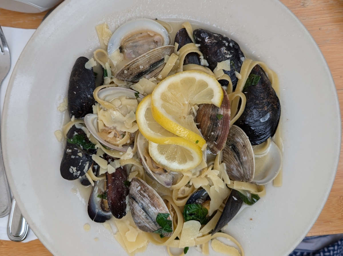 Wir haben dann auch ein sehr hübsches Restaurant gefunden, wo wir im Außenbereich leckeres Essen verspeist haben – ich hab mich sogar mal an Muscheln gewagt.