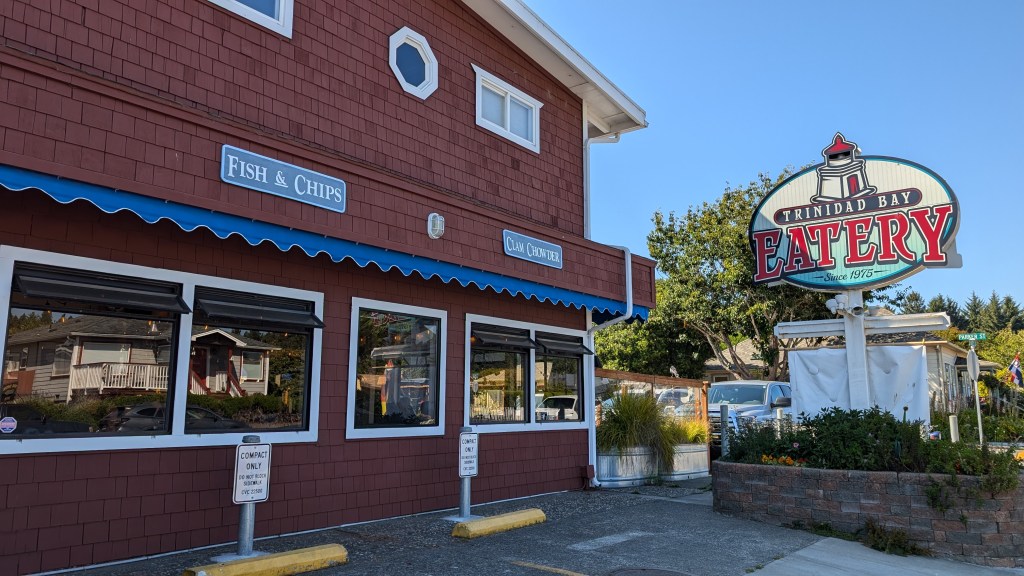 Drei Orte im Norden Kaliforniens haben bleibenden Eindruck bei uns hinterlassen: In Trinidad haben wir Station gemacht, weil mir die Trindad Eatery von einer im weitesten Sinne Kollegin (Lehrerin, die ich schon mal auf einer Fortbildung als Dozentin erlebt habe, und die ich ansonsten über Twitter/X kenne) empfohlen worden war.