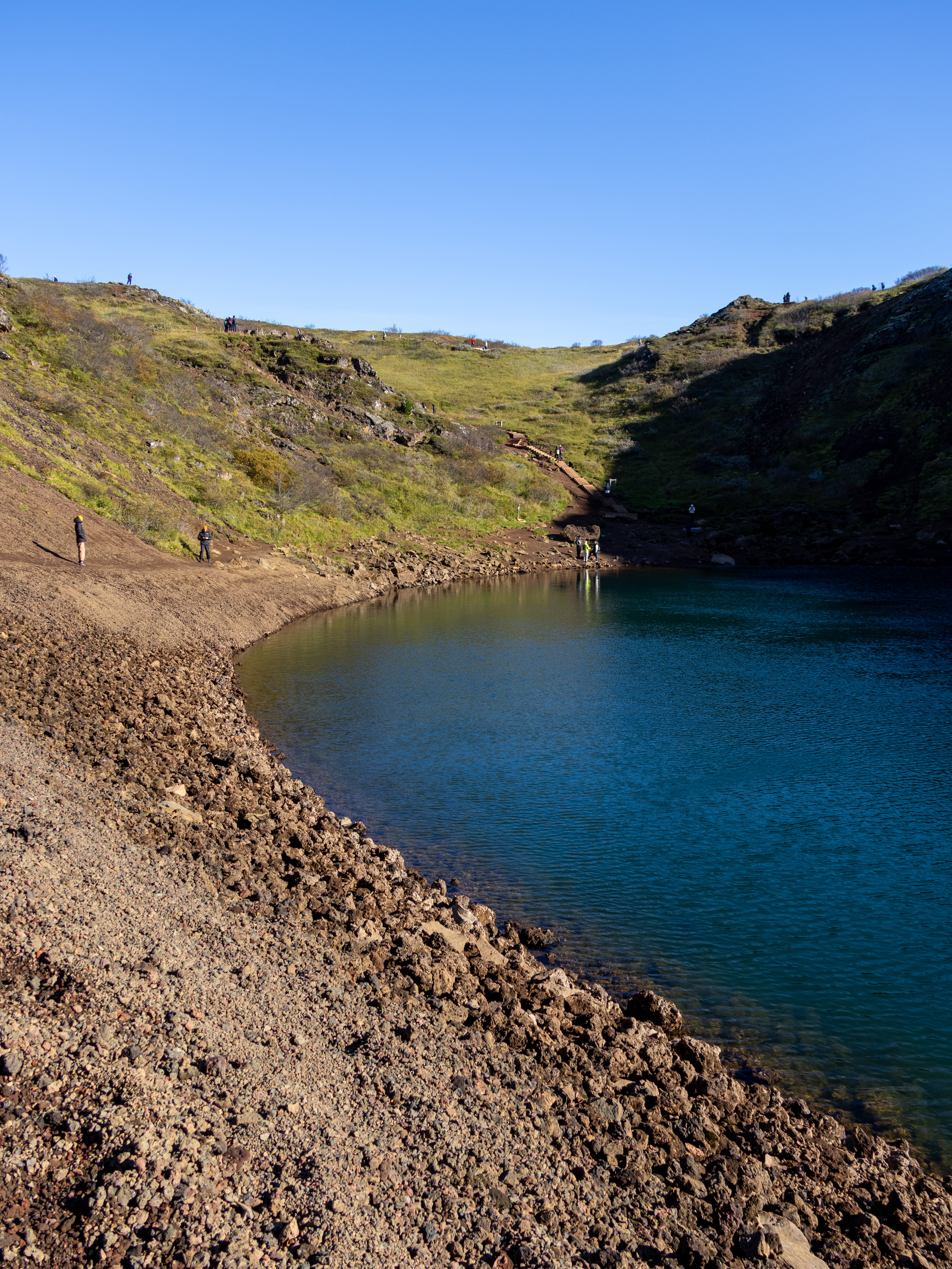 Zu der Uhrzeit, als wir dort waren, stand die Sonne noch zu tief, sodass sie Schatten über den Kratersee warf. Außerdem war es ziemlich windig, wodurch es auch keine spannenden Spiegelungen gab. Für mich persönlich einer der weniger interessanten Stopps auf der Route.