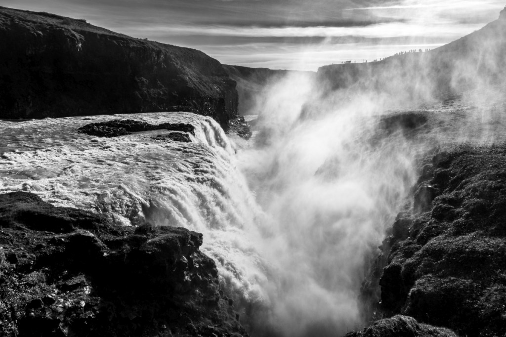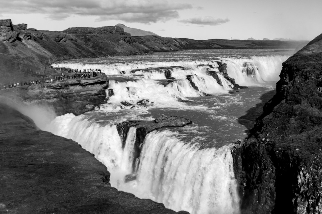 Nach dem kleinen und verspielten Brúarfoss hat uns der Gullfoss mit seiner Wucht umgehauen. Da es in der Ecke extrem windig war, war es sehr schwer, gute Fotos zu machen – vor allem auch, weil sehr viel Wasser „in der Luft lag“. Natürlich insbesondere in der Nähe der Wasserfalls, aber durchaus auch bei weiter weg liegenden Viewpoints.