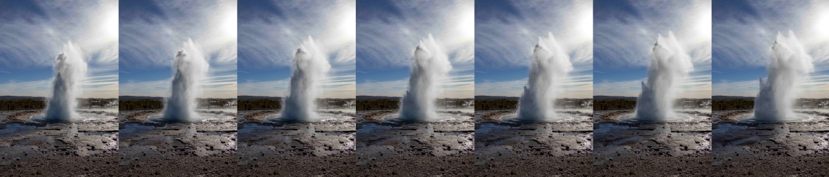Hier hat mir die Serienaufnahme-Funktion meiner Canon gute Dienste geleistet. Schon praktisch, dass der Geysir ca. alle 10 Minuten ausbricht, so muss man nicht allzu lange die Kamera im Anschlag halten… Ein interessantes Schauspiel, aber ich müsste mir jetzt nicht mehrere solcher Geysire ansehen. Na gut, wenn ich irgendwann doch mal im Yellowstone NP bin, dann vielleicht nochmal… 😉