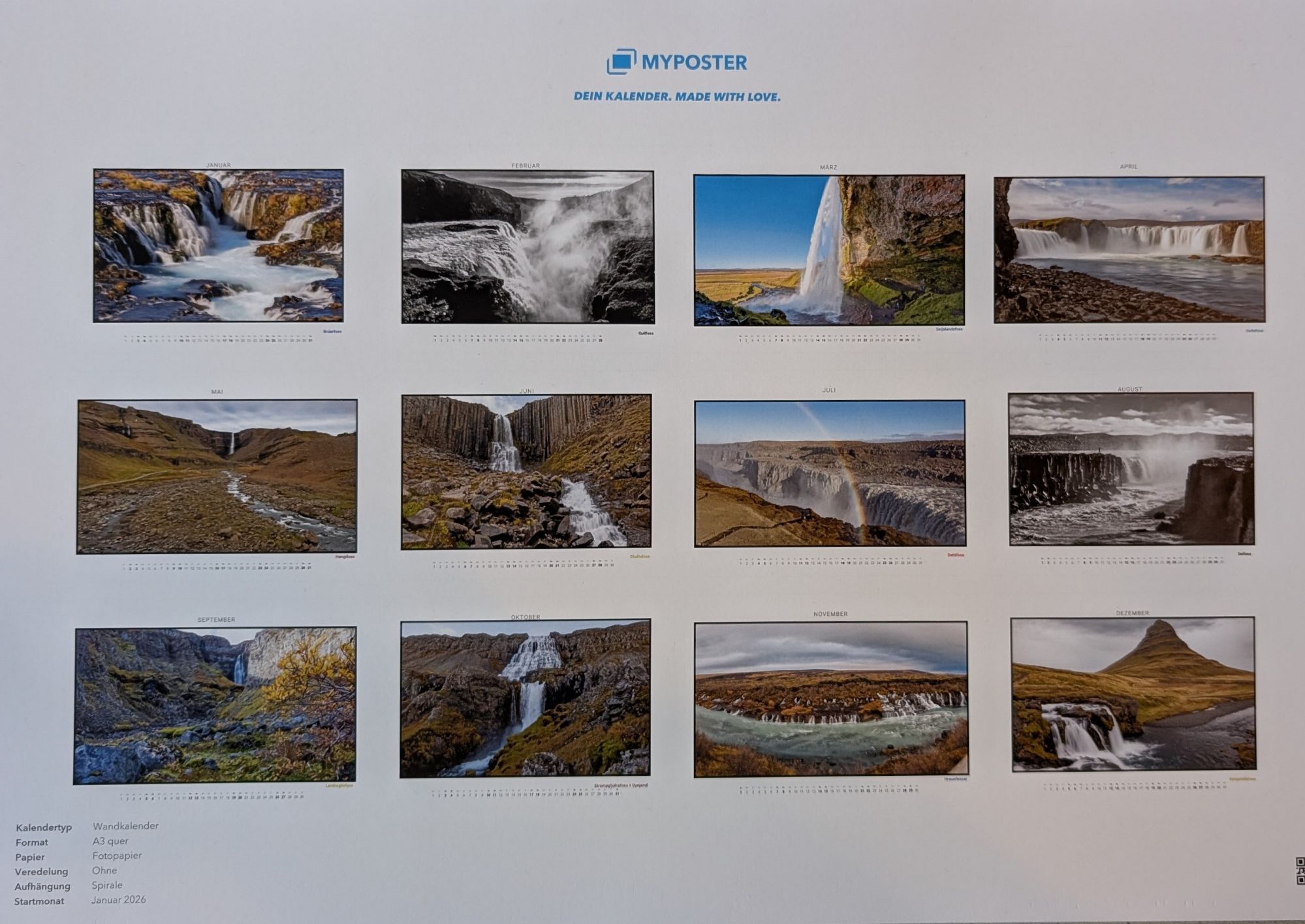 Ich hoffe, ihr habt bisher Freude an meinem Adventskalender?! Heute habe ich noch ein „Zuckerl“ für euch: Unter allen Kommentierenden verlose ich einen „Wasserfälle in Island“-Wandkalender (A3). 🙂
