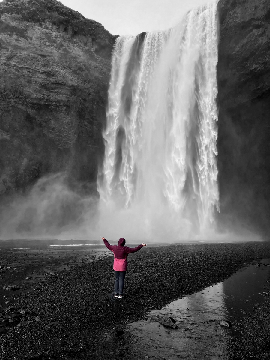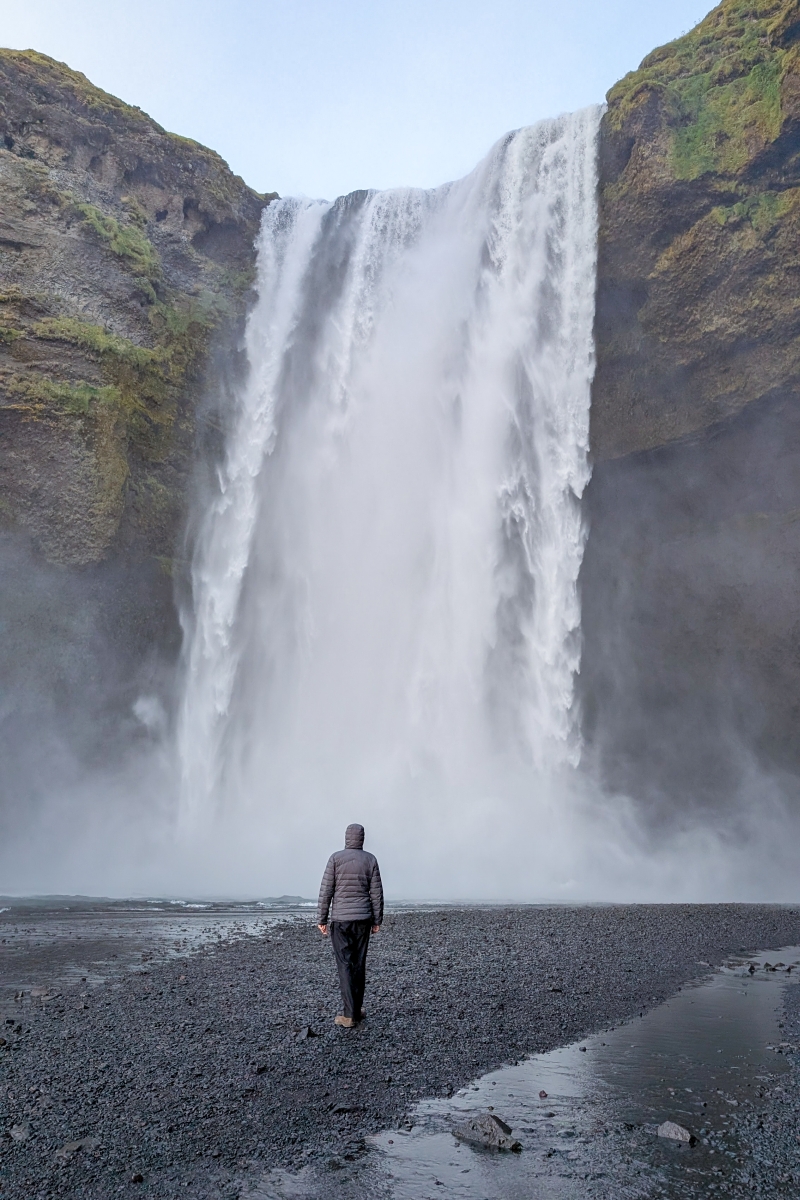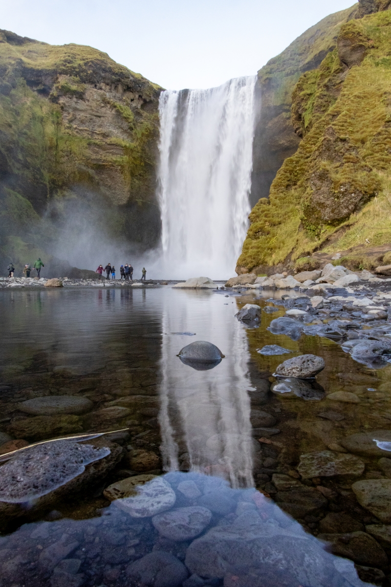 Bei diesen Aufnahmen würd die Dimension des Wasserfalls schön deutlich, weil der Mensch als Maßstab (ich wollte gerade sagen: aller Dinge. Aber nein,pardon: allen Wassers…) im Bild ist.