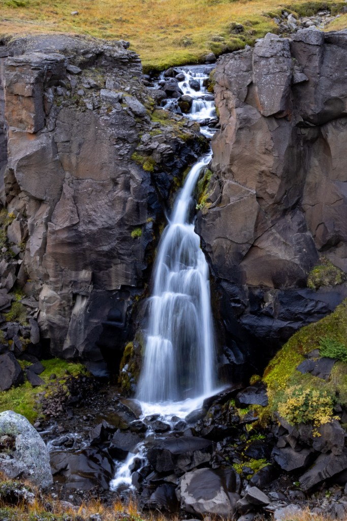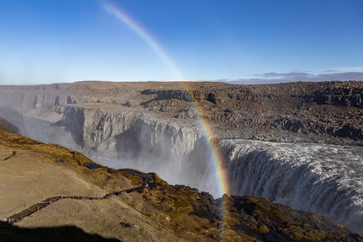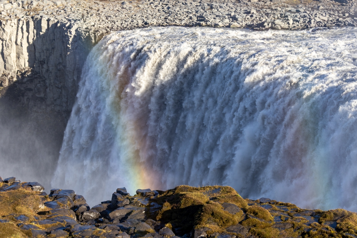 Einer der größten Wasserfälle in Island: es fällt 20 m³ Wasser pro Sekunde 45 m tief bei 100 m Breite.
