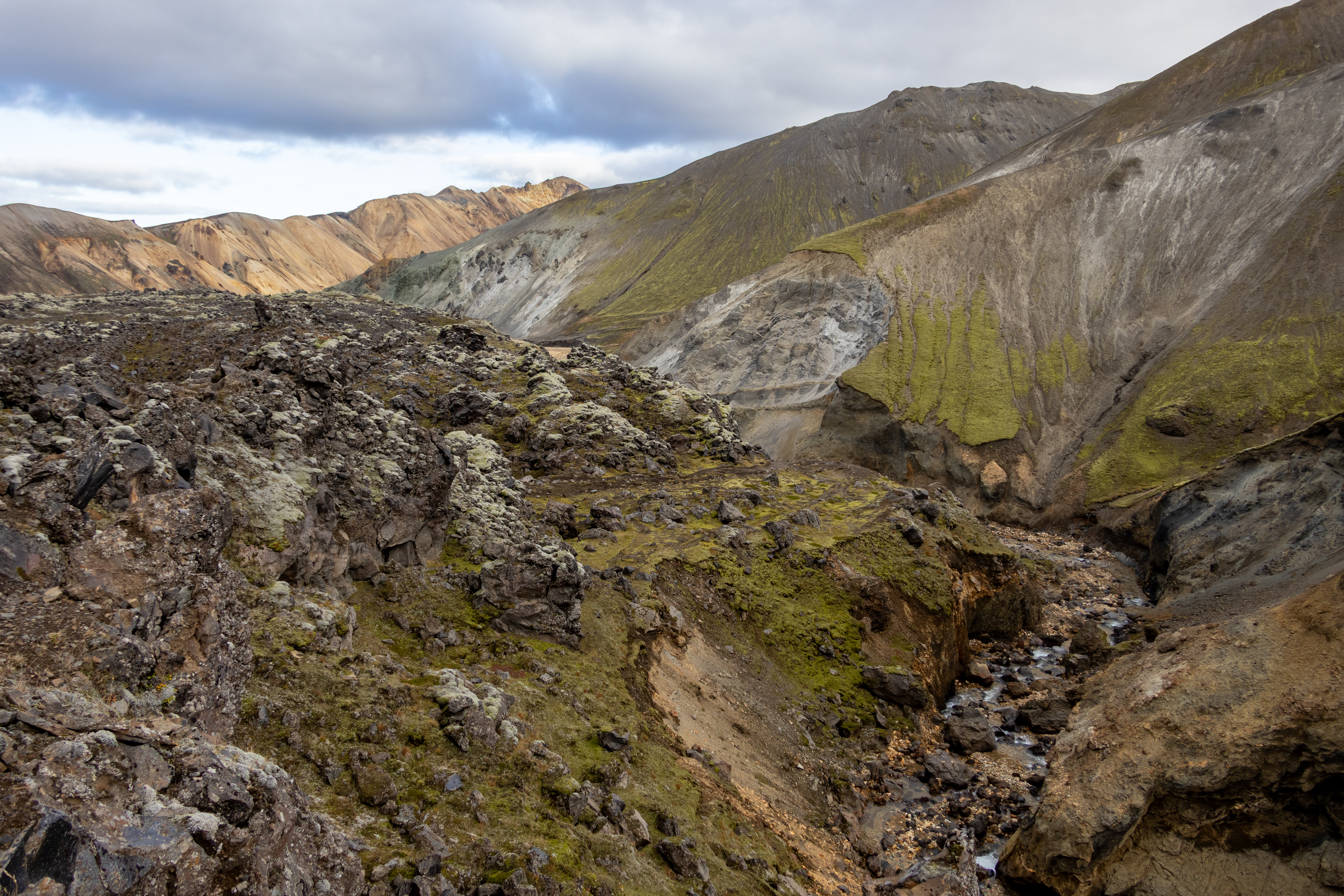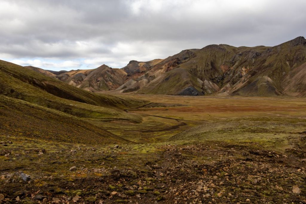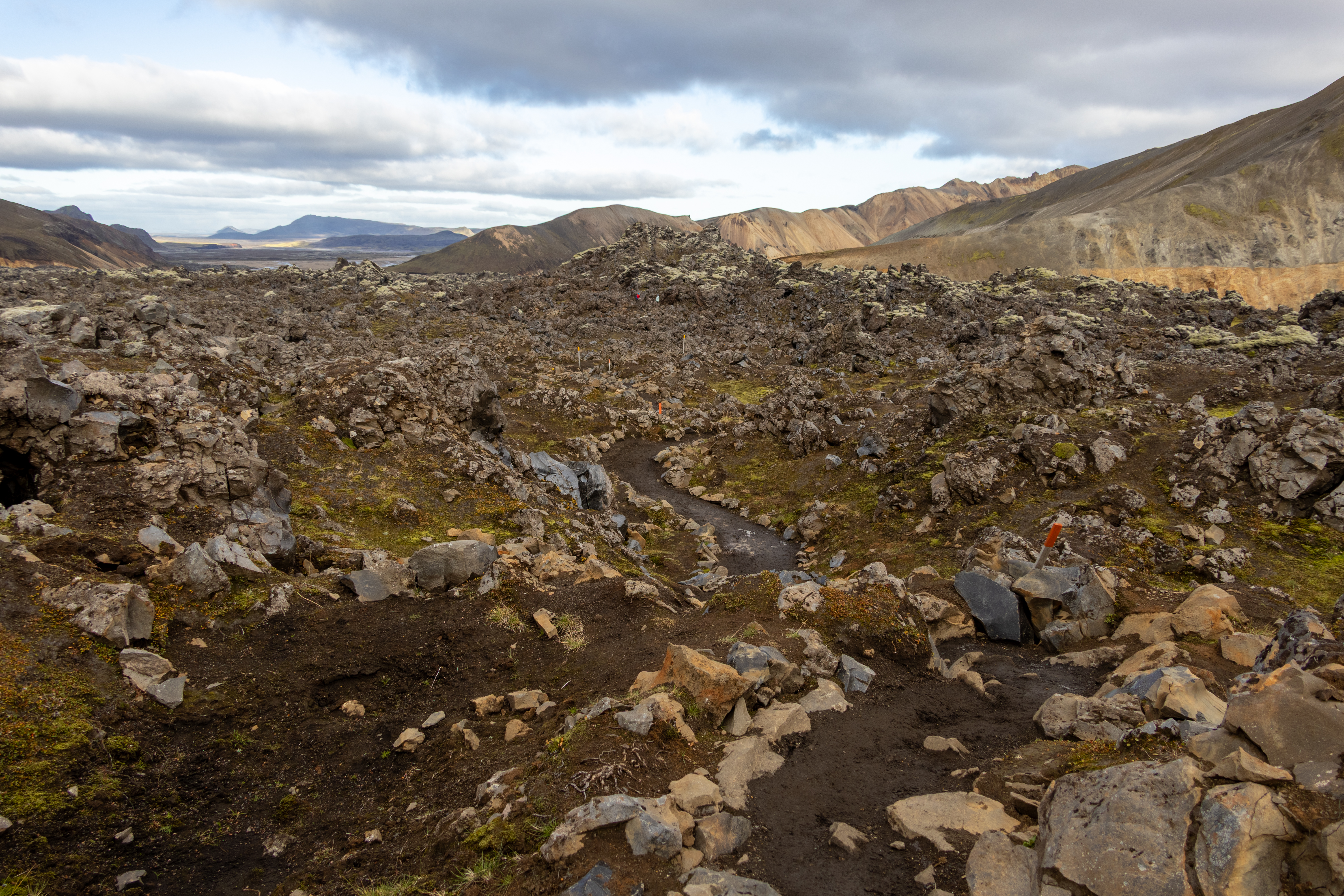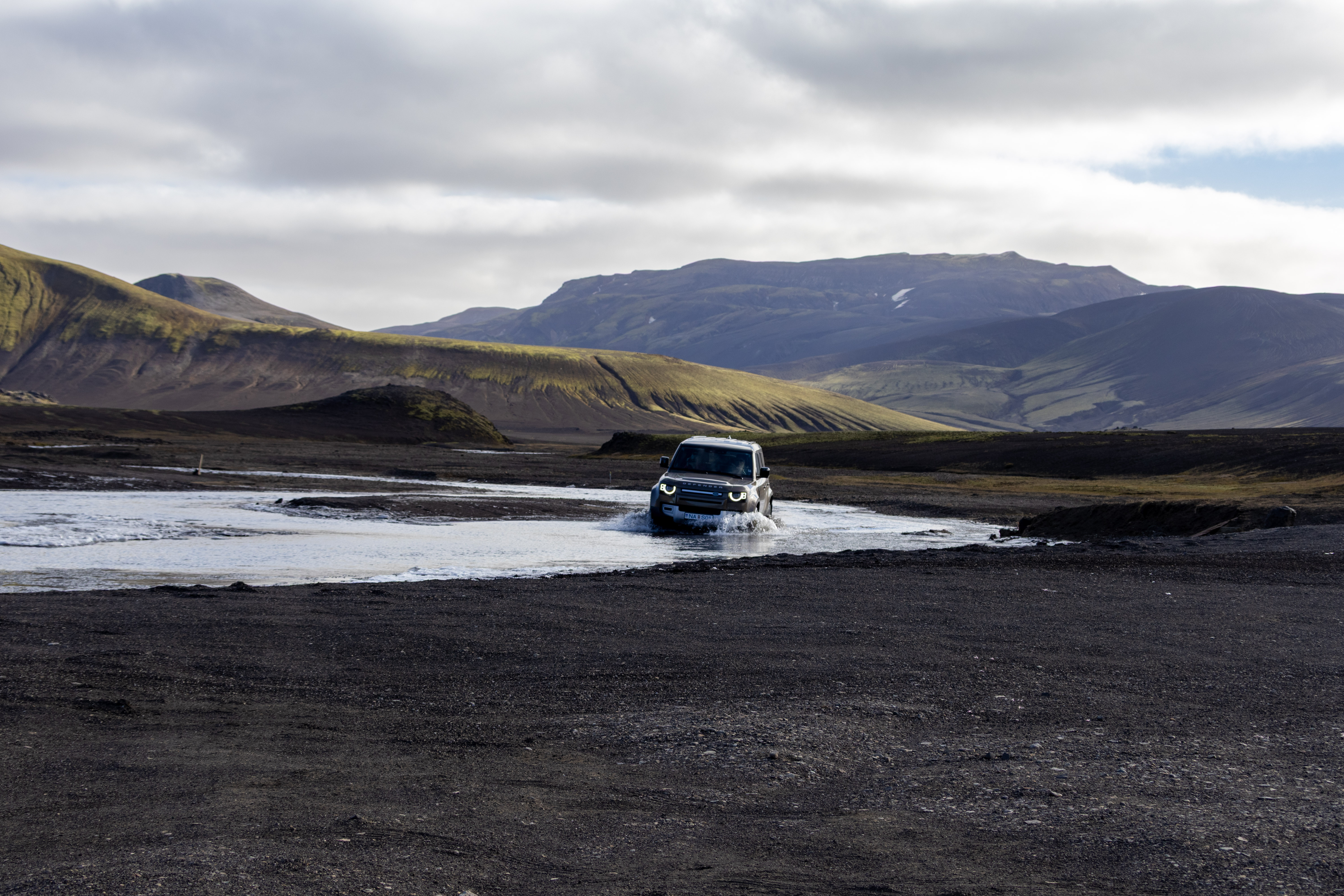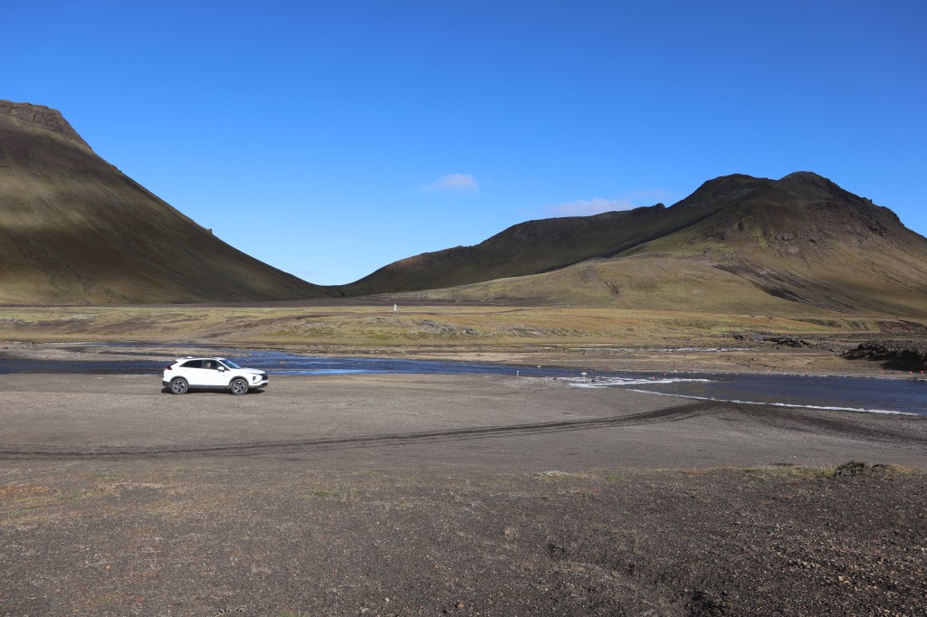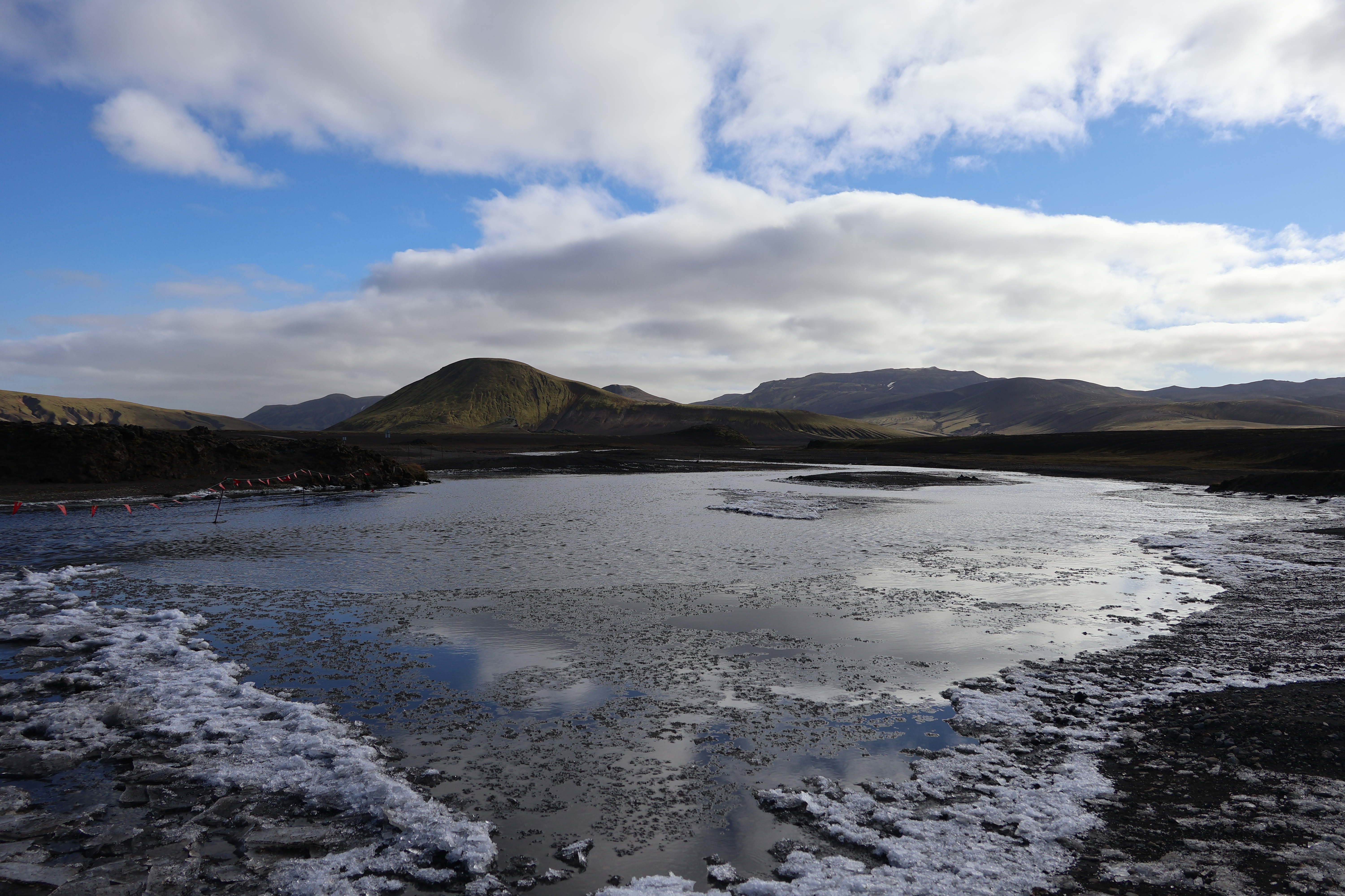 Die Landmannahellir, die wir jetzt befuhren, war von noch mehr Schlaglöchern „durchlöchert“, und so war die weitere Fahrt extrem anstrengend. Wir mussten dann noch einmal durch eine kleine Furt fahren, die war im Vergleich aber nicht viel größer als eine große Pfütze, sodass das gar kein Problem mehr war. Die allerletzte Flussdurchquerung direkt vor/bei Landmannalaugar haben wir uns dann einfach gespart, weil es einen Parkplatz davor gab und einen Fußweg, der uns trockenen Fußes auf die andere Seite brachte.