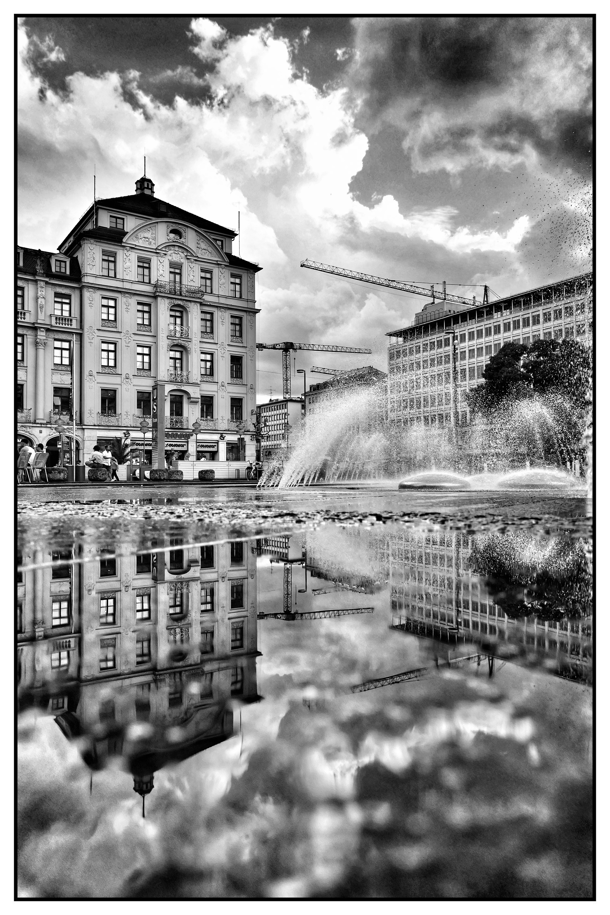 Portfolio: München in Pfützen 2025 – Schwarz-weiß